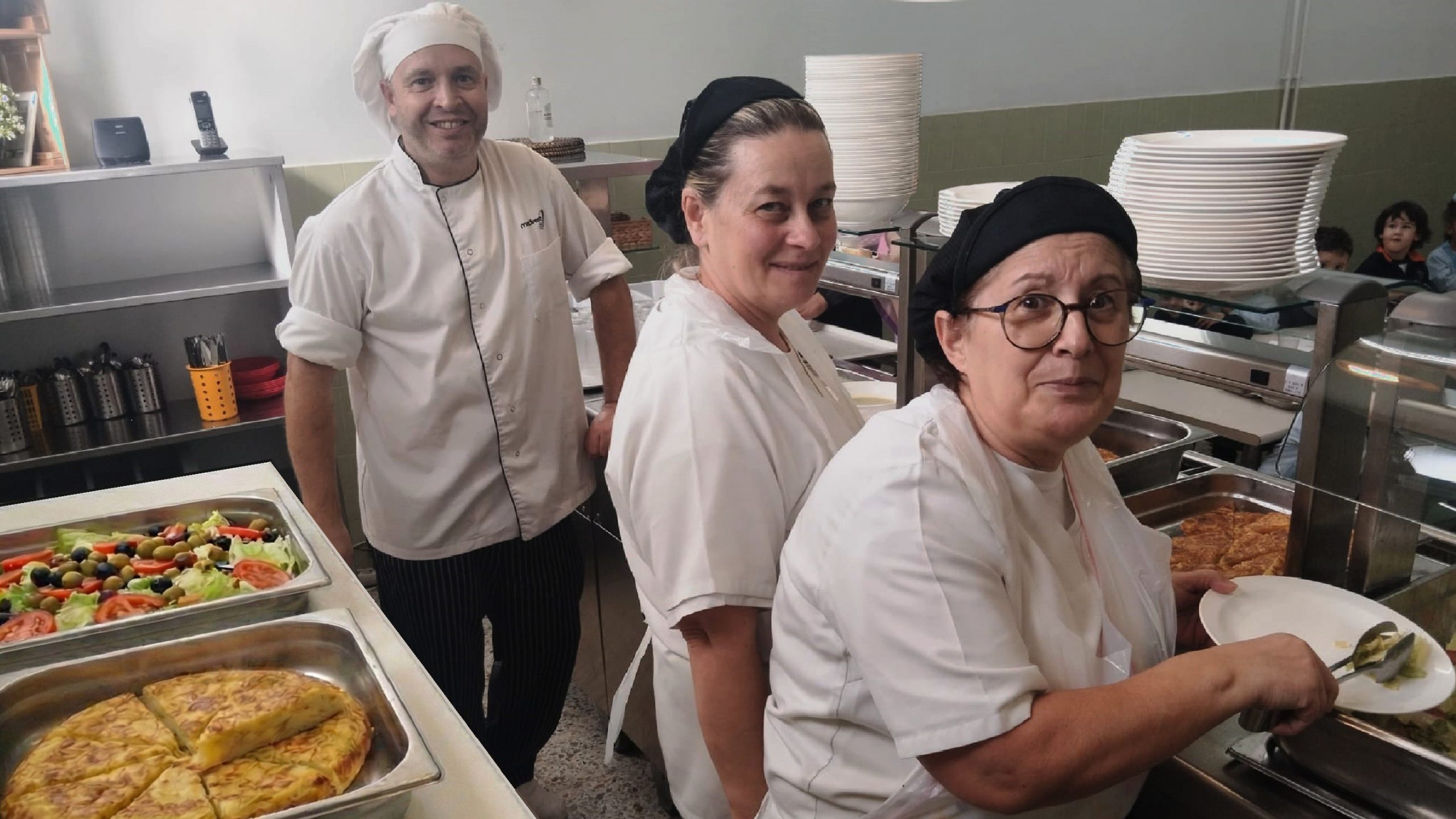 Cocinero, auxiliares y monitores/as que conocen al alumnado y le acompañan cada día. La cercanía es posible porque cocinamos y servimos nosotros.